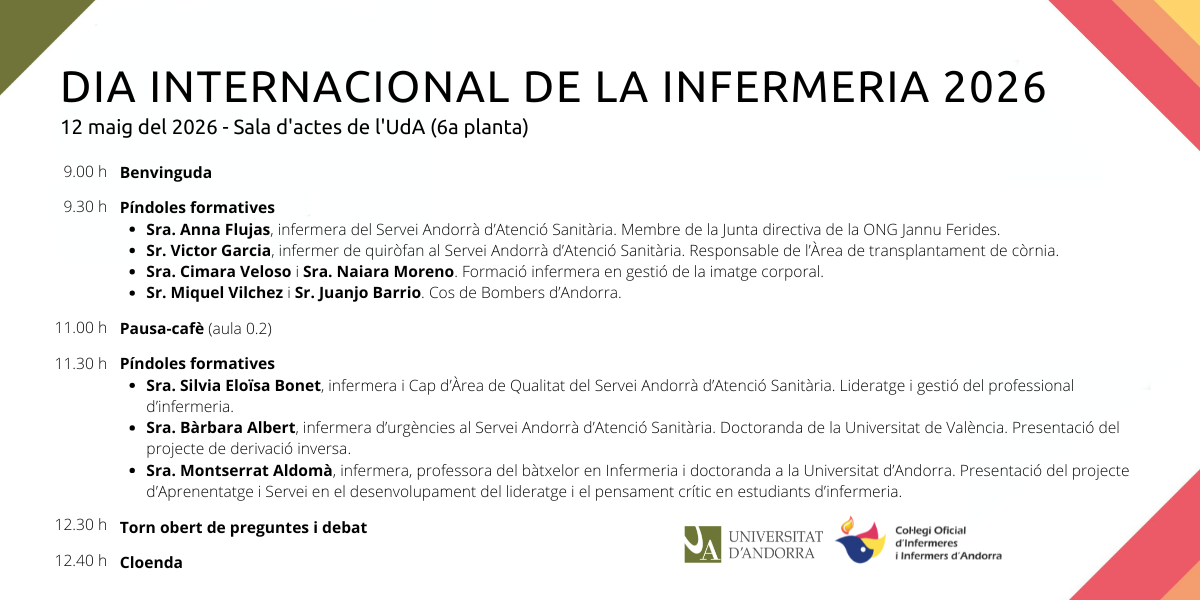 El 12 de maig, la Universitat d'Andorra, juntament amb el Col·legi Oficial d'Infermeres i Infermers d'Andorra, commemorarà el Dia internacional de la infermeria amb una jornada d'activitats que tindrà lloc […]
